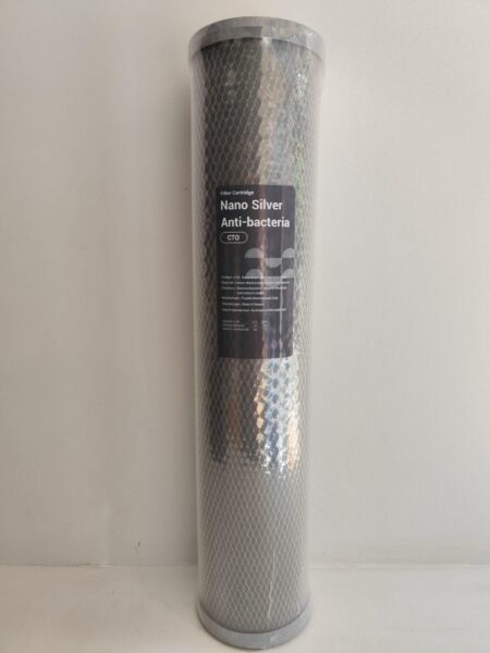 Ανταλλακτικό φίλτρο ενεργού άνθρακα Big Blue CTO-20″ Nano Silver Anti-bacteria. Παρέχει προστασία από το χλώριο, τα φυτοφάρμακα και άλλους χημικούς και οργανικούς ρυπαντές, καθαρίζοντας αποτελεσματικά το νερό που διέρχεται από αυτούς, βελτιώνοντας ταυτόχρονα την γεύση και την οσμή του.